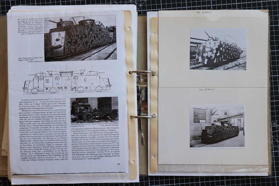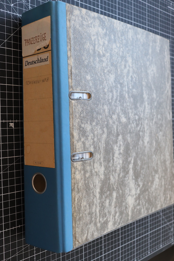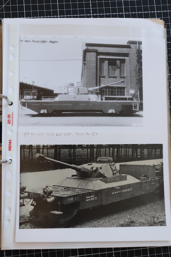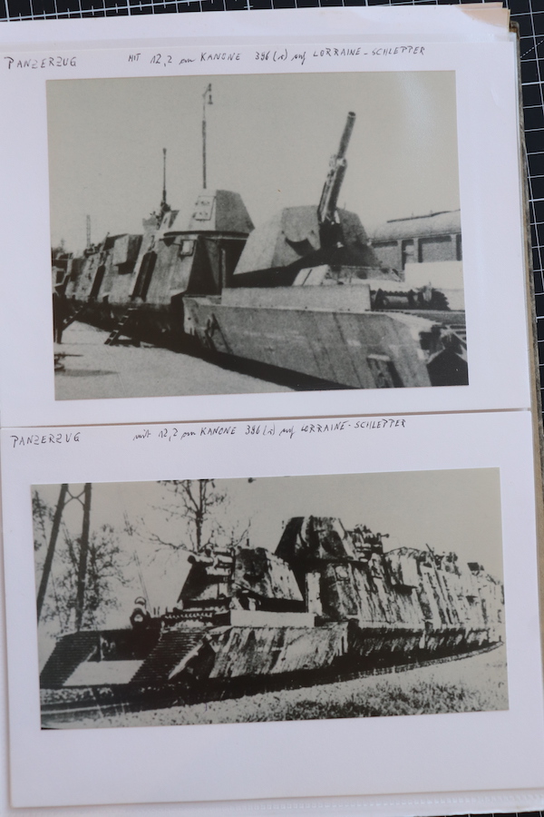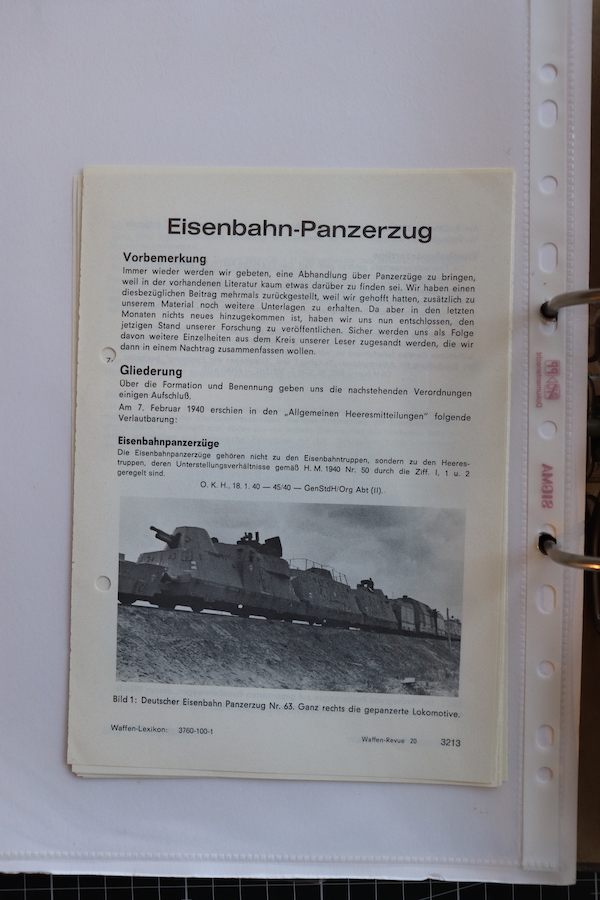 Akte aus dem Bestand des PAWLAS Verlages zur Geschichte der deutschen Panzerzüge. Die Akte war wahrscheinlich die Grundlage für ein "Waffen Reveu" und "Waffen Arsenal" Hefte.